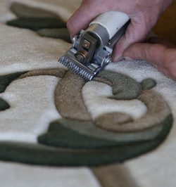 Our system is a proprietary system, so we keep our techniques private and in-house. We can tell you; it is NOT a weaving system produced on a loom. It is also NOT a tufting gun process using spools of wool thread. Think along the lines of a mosaic process… almost.
